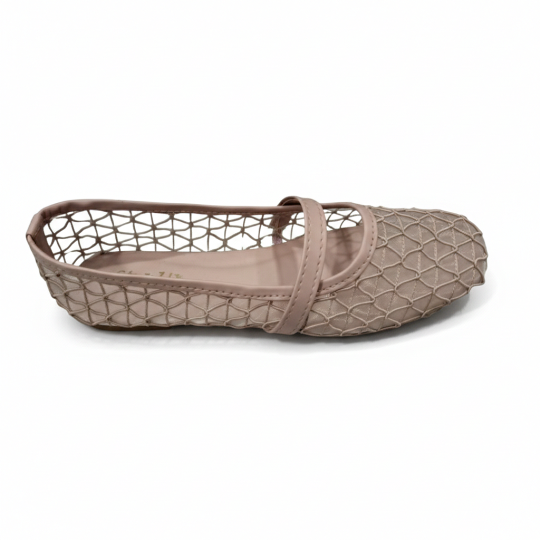 Nude Mesh Lattice Ballet Flats